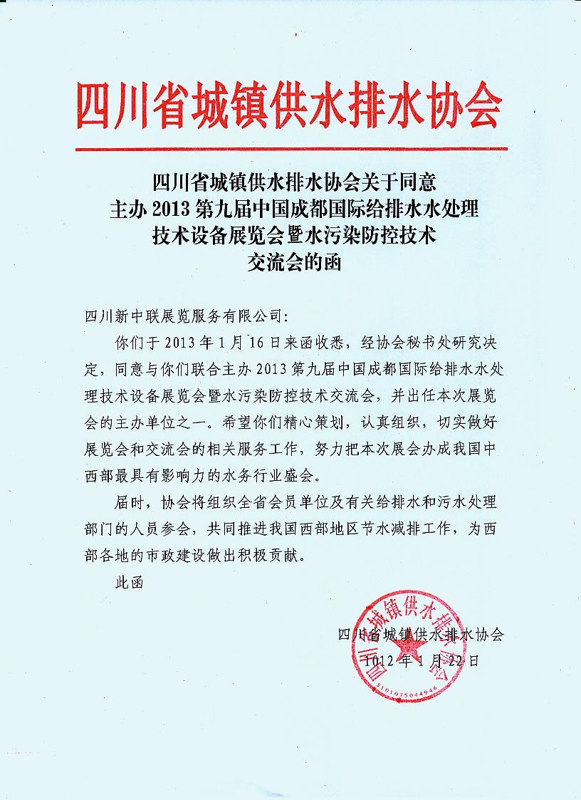 四川省供水排水協(xié)會將組團參加2013成都水展的文件函